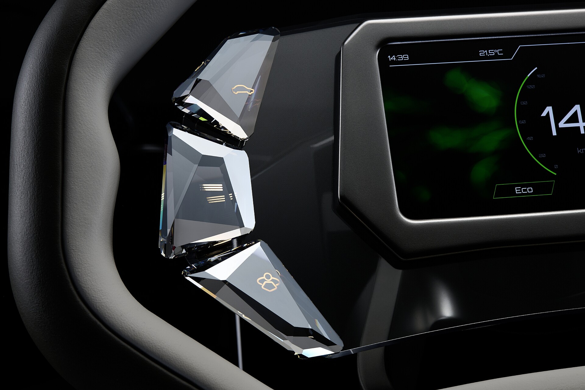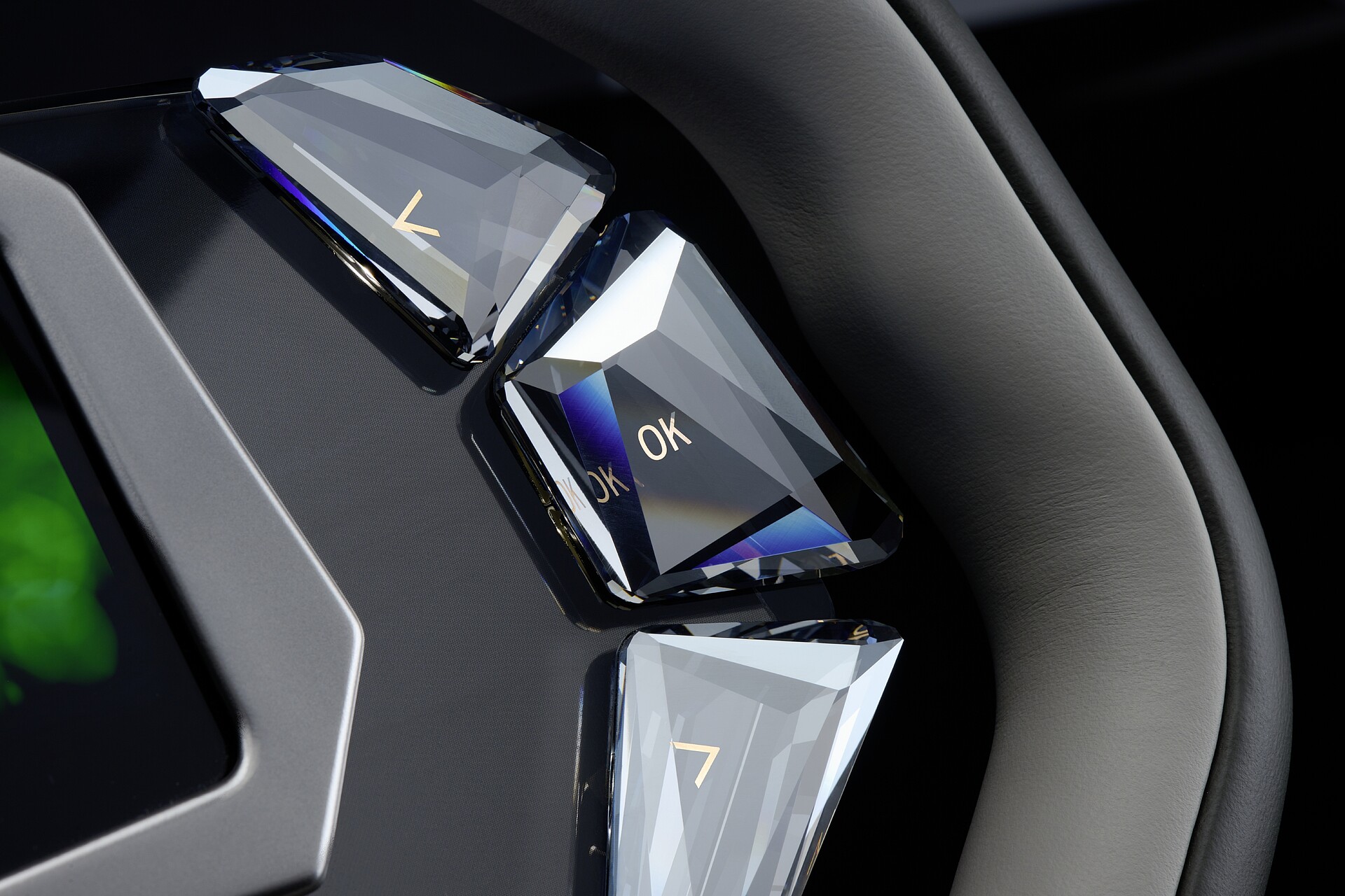 Combined expertise led to the success of this project. KURZ’s international, interdisciplinary design team has in-depth expertise in the field of functional and decorative surfaces and has been intensively involved in the design elaboration of the Crystal Steering Wheel. The special anti-scratch coating for the transparent plastic components of the steering wheel also comes from KURZ. Three Swarovski crystals are integrated on each side of the central display. Made in Austria, the solid-cut crystals by Swarovski Mobility have an incomparable depth effect and set breathtaking visual accents.
