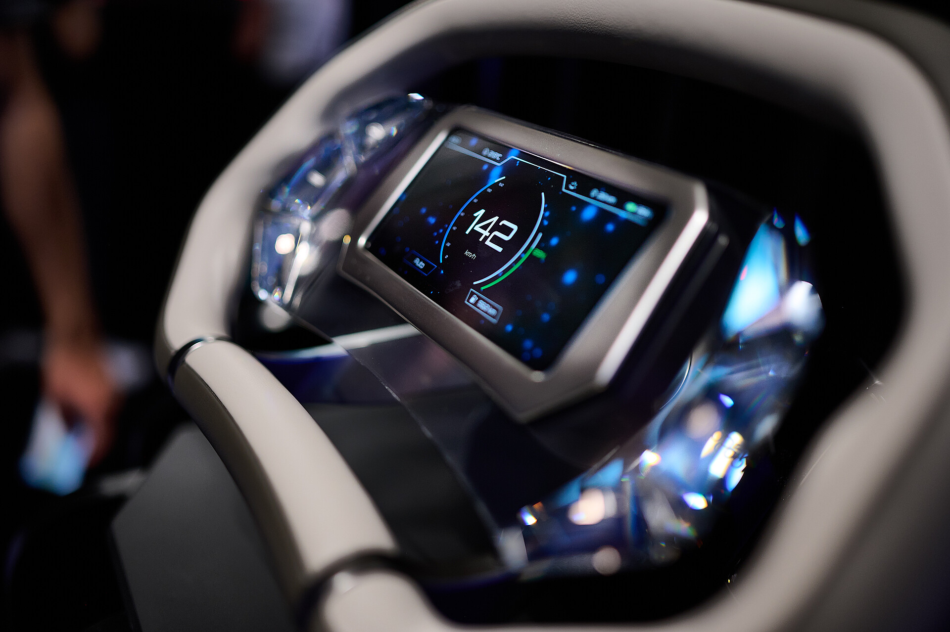In terms of design, the aim was to create a concept that represents the perfect symbiosis of elegance and luxury with a sporty look and attracts everyone's attention. The crystals from Swarovski Mobility were to form the basis for this design. These not only serve as a decorative element but also as a functional component that sets new standards in the interior and exterior design of premium and luxury vehicles. Using the most advanced sensor technology, functions for operating the vehicle were to be integrated into the crystals while maintaining absolute transparency. Triggering these functions had to work as if by magic via cables that were also completely transparent. At the same time, users needed to be given haptic feedback on the registration of their input commands.