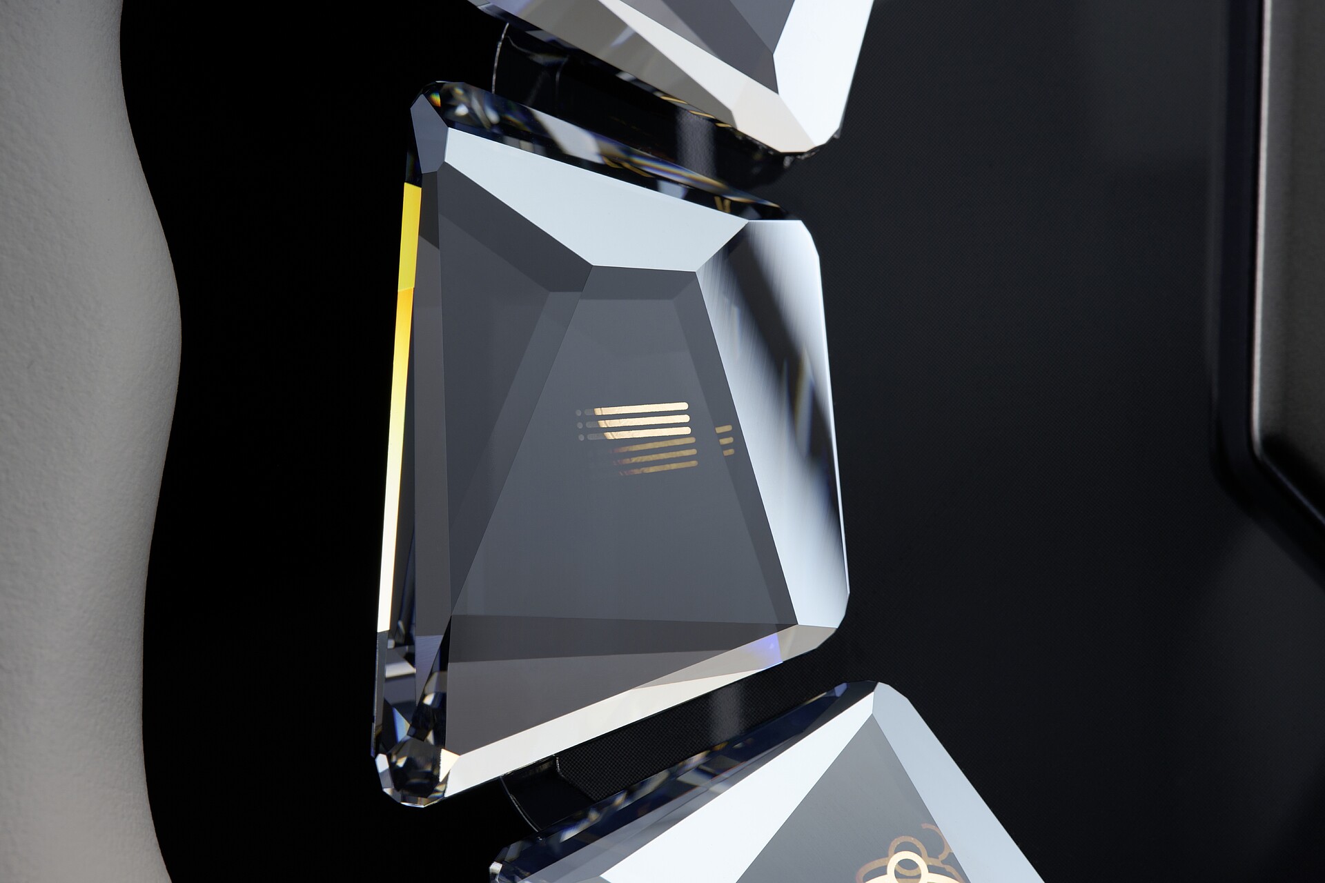Thanks to wafer-thin, transparent, and conductive PolyTC® foils from the KURZ subsidiary POLYIC, the crystals only reveal their smart functionality when touched by the user. This ‘magic’ is made possible by a special coating. The pretreatment makes the transparent crystals conductive, so that signals are transferred up to the completely invisible touch sensor surfaces on the PolyTC® foils in the background. The LEDs for illuminating the crystals are attached to the PolyTC® foil and are supplied with power via transparent PolyTC® cables. What’s more, the crystals are scratch-resistant and easy to clean. The robust and durable PolyTC® sensors can be assigned various functions and flexibly adapted to a wide range of component geometries.